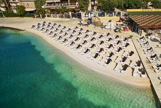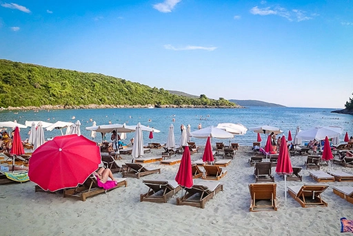 On this beach near Tivat, you can also ride catamarans and admire the beautiful bay. Near the beach, there is parking for guests, as well as all the amenities for a comfortable stay, but it is worth noting that it is pebbly and the sunbeds on it are paid (about 15 euros/day, but umbrellas are included immediately).