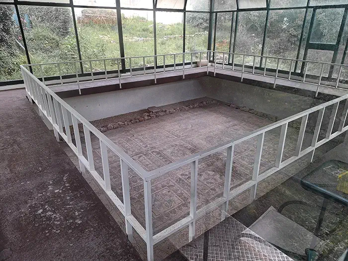 In 1941, another mosaic measuring 37.5 square metres was found. This is the one that can be seen today in the glass pavilion, which can be accessed on weekdays from 10 a.m. to 2 p.m.